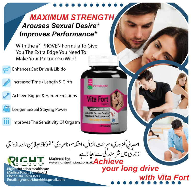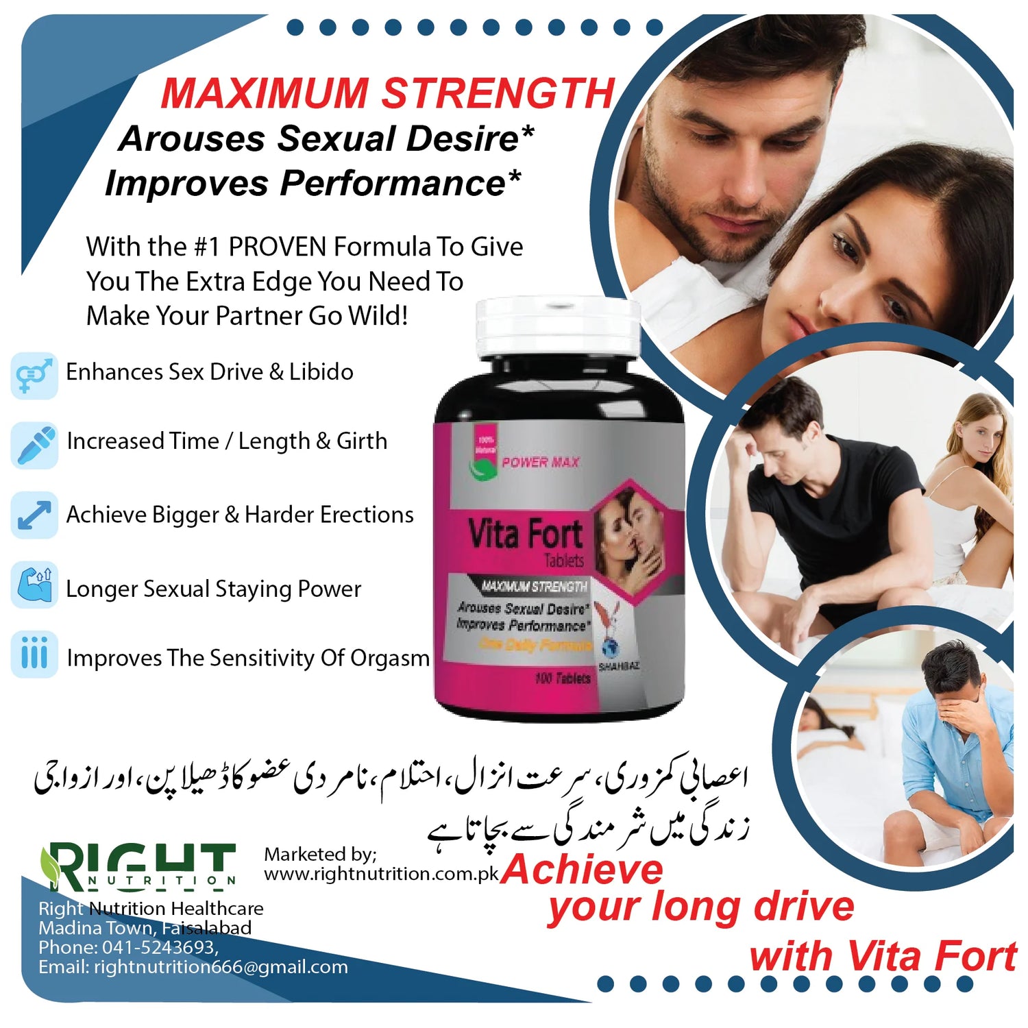Vita Fort is a natural performance supplement designed to boost energy, vitality, and confidence. Formulated with powerful herbal ingredients, it supports improved stamina, enhances desire, and helps promote overall well-being. Regular use may assist in maintaining a healthy lifestyle by encouraging balance and performance.